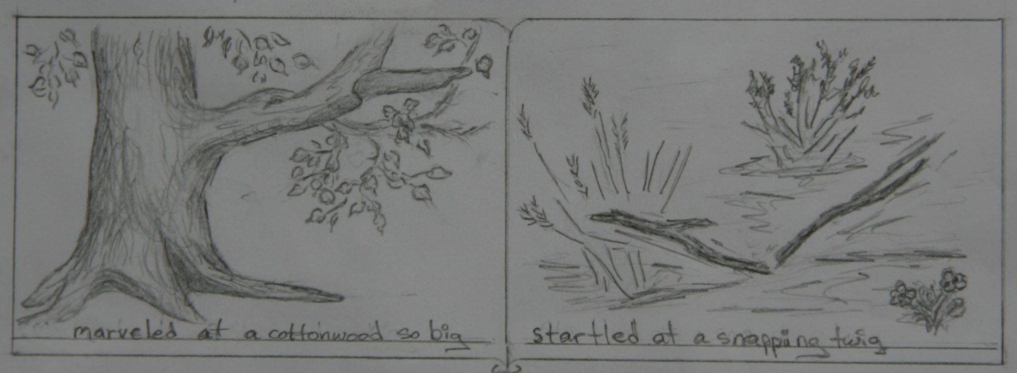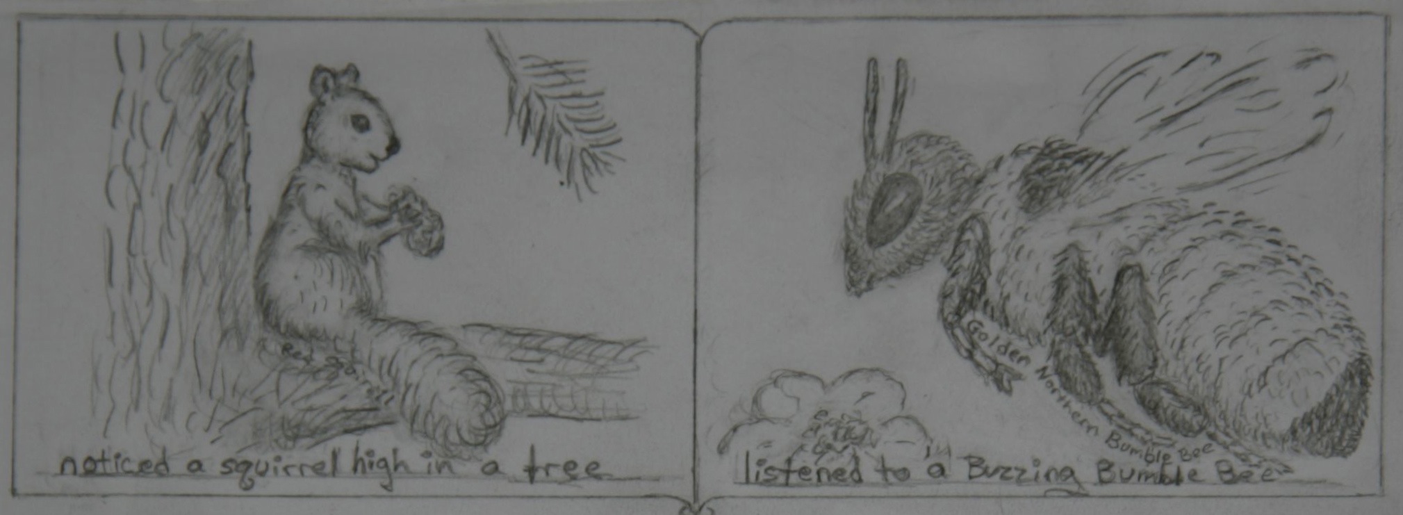 noticed a squirrel, high in a tree, listened to a buzzing bumble bee,