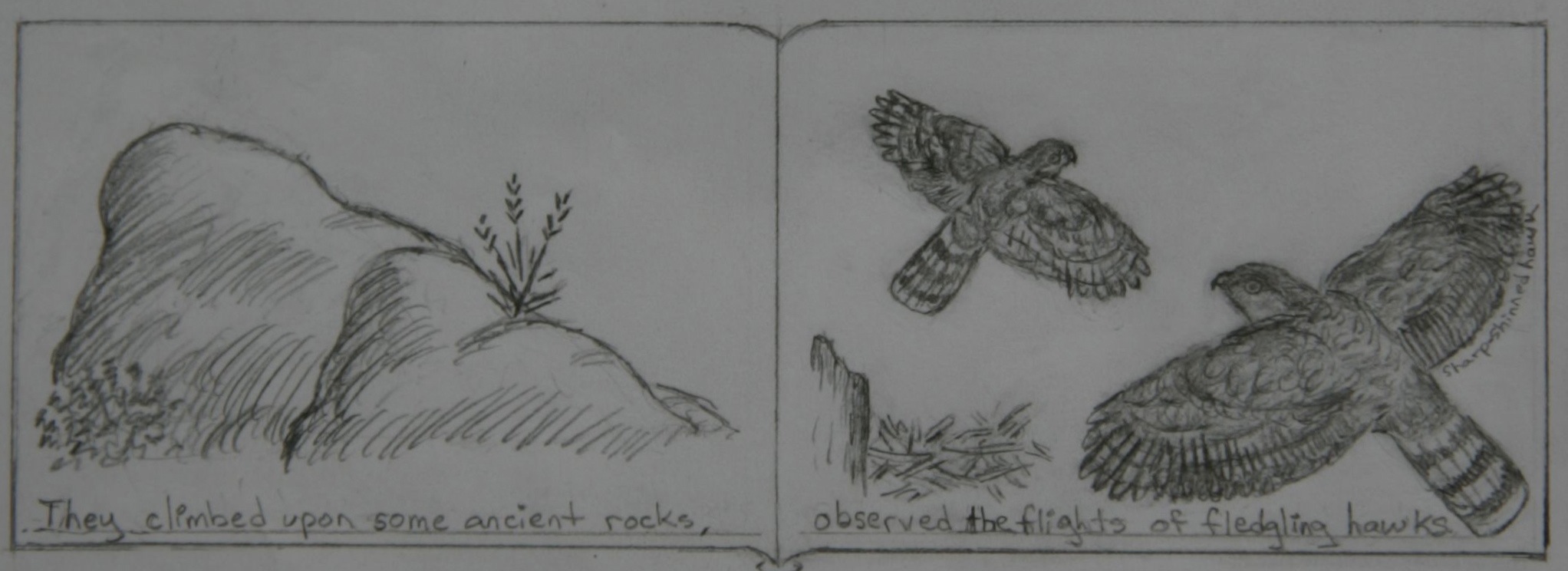 They climbed upon some ancient rocks, observed the flights of fledgling hawks,
