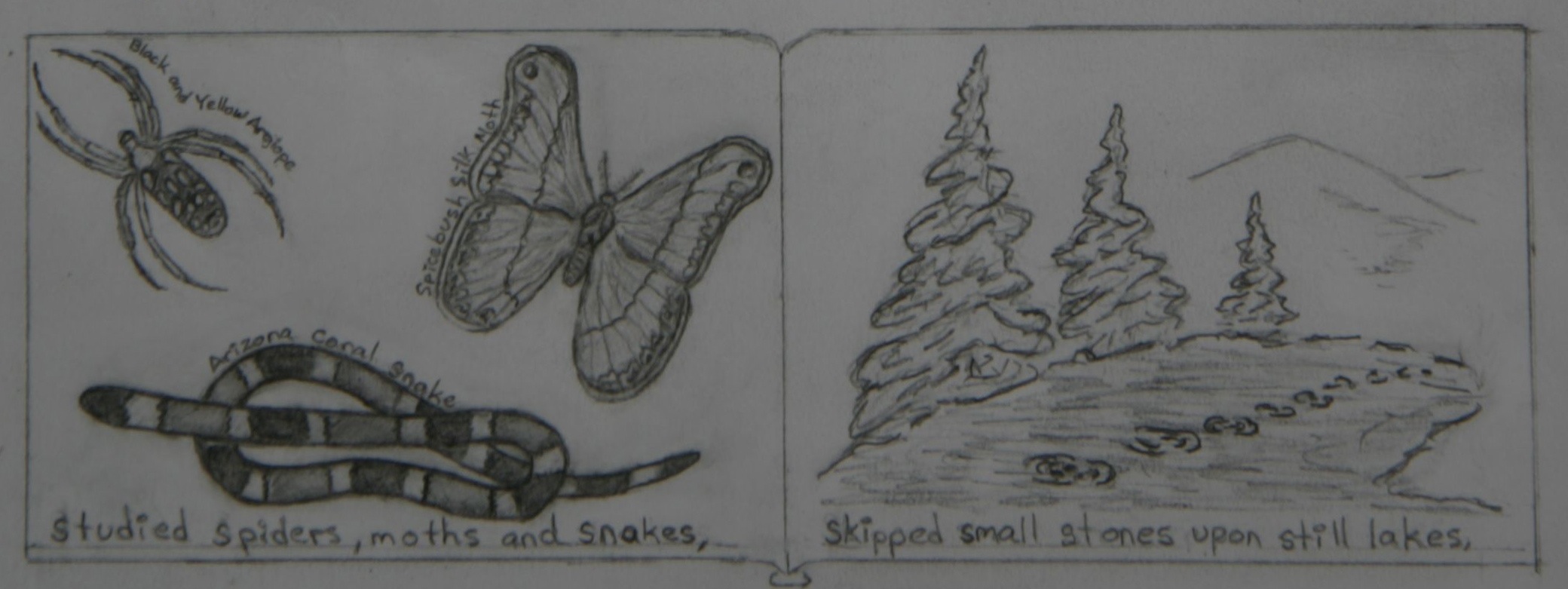 Studied spiders moths and snakes, skipped small stones upon still lakes,