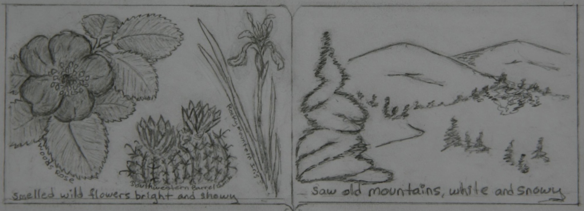 smelled wild flowers, bright and showy, saw old mountains, white and snowy,
